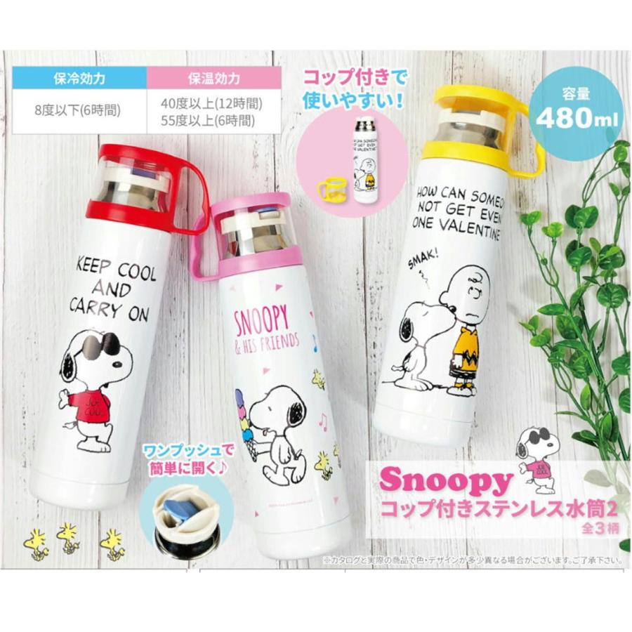 スヌーピー コップ付 水筒 ステンレス Snoopy キャラクター ステンレスボトル 480ml ファンシー雑貨 水筒 ステンレスボトル キャラクターグッズ専門店 Ashop